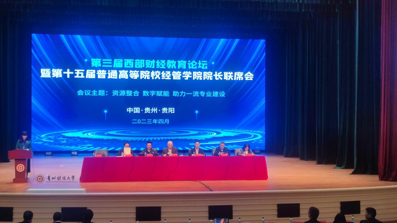 4月1日,由西南财经大学出版社主办、贵州财经大学工商管理学院、经济学院承办的第三届西部财经教育论坛暨第十五届普通高等院校经管学院经理联席会议在贵州财经大学顺利召开。本次会议的主题是“资源整合、数字赋能,助力一流财经专业建设”,由主题报告、经理论坛、系主任论坛三大部分组成。公司党委书记黄丹、副经理付朝渊参加会议。