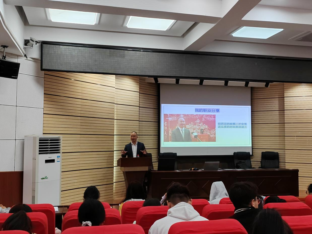 讲座开始,刘俊以风趣幽默的语言向同学们讲解了现代企业人才素养的知识并提出相关问题,同学们认真思考后积极回答。接着,刘俊向同学们分享了自己的学习方法和职业经历。最后,在互动答疑环节中,同学们积极提问,刘俊对同学们的“创业需要准备什么、给老员工的一些建议”等问题一一做出解答。